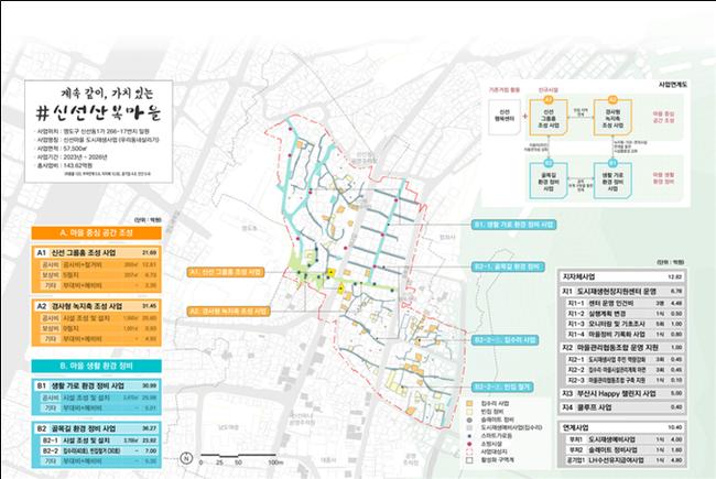 이 지역은 2013년 영도 제1재정비촉진지구가 해제되면서 노후 주거지로 방치된 지역으로, 열악한 주거환경 개선을 위해 ▲노인·청년 주거공간 제공을 위한 ‘신선 그룹홈’ ▲급경사지 보행 안전을 위한 ‘경사형 녹지축’ ▲휴게 쉼터, 공원 조성, 집수리 등 ‘마을생활환경 정비사업’을 추진하여 마을에 활기를 불어넣을 계획이다.