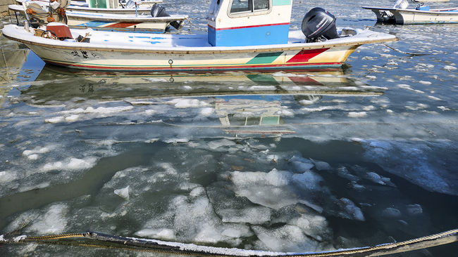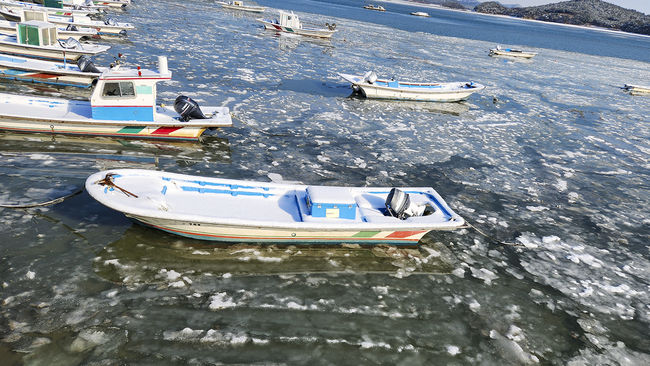 서산시, 가로림만 바다 한파로 얼어가로림만 결빙으로 현재까지 어업 피해는 없으나 결빙 상태가 지속될 경우 제철을 맞이한 감태 수확이나 굴 따기 등에 차질이 있을 우려가 있다.
