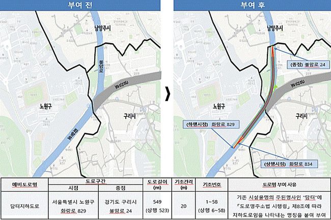 행정안전부는 20일, 중앙주소정보위원회를 개최하고, 국내 최초로 담터지하도(위) 등 5개 입체도로 구간에 대해 도로명을 부여했다고 밝혔다. (자료=행정안전부 제공)