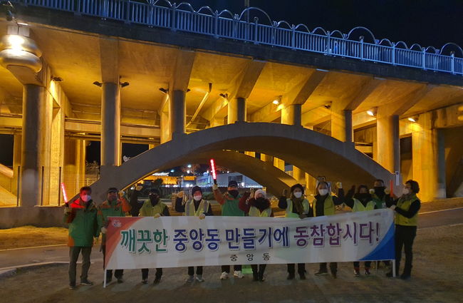 중앙동은 2021년부터 매주 토요일 주말 대청소를 시행해왔으며(혹서기 혹한기 제외), 축제시기에는 매주 일요일 남강변 정화활동을 동시에 시행하여 주말에도 토,일 공백없이 남강변과 중앙광장을 깨끗이 유지하는 등 꾸준한 노력을 다해왔다.