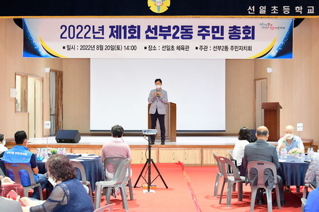 안산시, 풀뿌리 주민자치 실현 탄력...주민총회서 수립한 자치사업 예산 전액 반영(이민근 시장이 지난 8월 20일 선부동 주민총회에 참석하고 있다.)