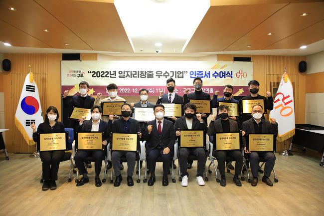 구로구는 12월 21일 구청 창의홀에서 ‘2022년 일자리창출 우수기업 인증서 수여식’을 열고 우수기업 27개 사에 인증서와 현판을 수여했다고 밝혔다.