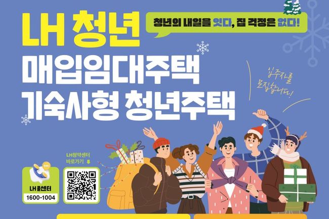 한국토지주택공사가 모집하는 청년(815호)·신혼부부(1,359호) 매입임대주택은 12월 22일 이후 한국토지주택공사 청약센터 누리집에 게시된 공고문을 통해 확인할 수 있으며, LH 콜센터를 통한 전화상담도 가능하다.