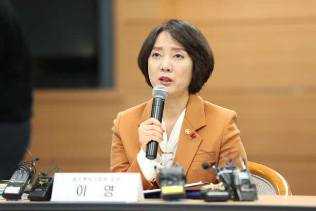 이영 중소벤처기업부 장관이 22일 서울 종로구 금융감독원 연수원에서 열린 `중소기업 재도약과 성장지원을 위한 업무협약식`에서 인사말을 하고 있다.