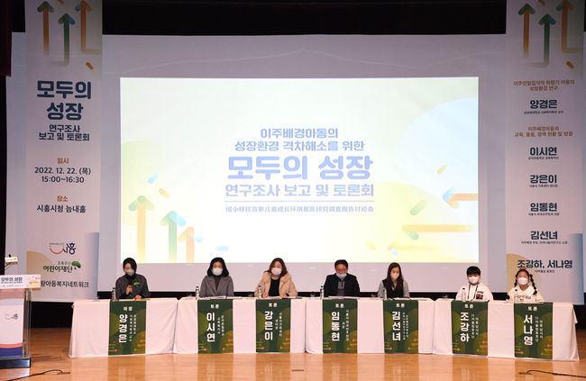 시흥시는 지난 22일 시흥시청 늠내홀에서 이주배경아동을 포함한 모든 아동의 건강한 성장을 주제로 한 ‘이주배경아동의 성장환경 격차 해소를 위한 연구조사 보고 및 토론회’를 개최했다고 밝혔다.