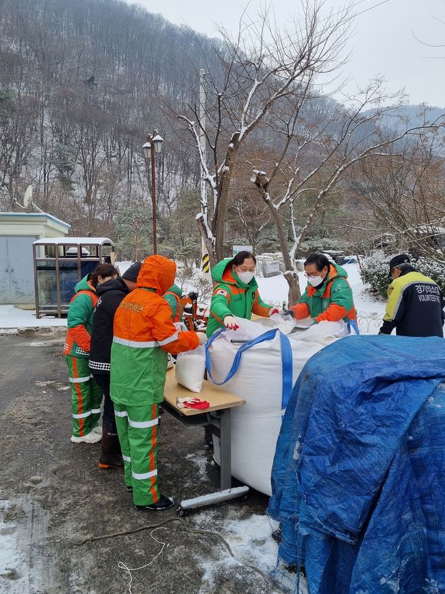 한편, 이날 제작된 모래주머니는 강설 및 결빙 취약지역, 제설함에 비치해 설해 대비에 사용될 예정이다.