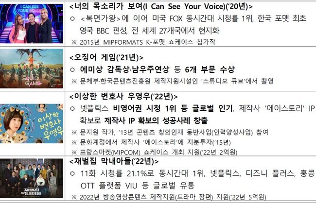 `오징어 게임`, `이상한 변호사 우영우` 이을 방송영상콘텐츠 집중 육성한다. 자료=문화체육관광부 제공