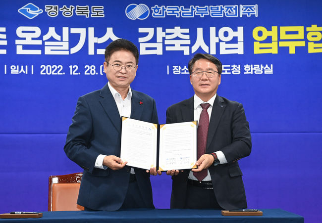 경상북도는 28일 도청에서 한국남부발전과 농업·농촌분야 온실가스 배출 감축을 위한 업무 협약식을 가졌다고 밝혔다.