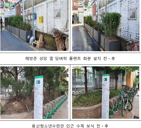 대상지는 △해방촌 성당 옆 담벼락 △효창동 주민센터 옆 화단 △해방촌 흔들그네 쉼터 △이촌동 기찻길 옆 △구립용산노인요양병원 △용산청소년수련관 △용산문화원 △이촌동 교통섬 △서빙고동 반포녹지대 △용산구청사 등 15개소다.