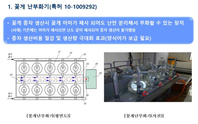 무상이전기술은 꽃게 난 부화기 등 3건이며, 관내양식업체 2곳을 대상으로 인천시 지식재산위원회의 심의를 통해 가결된 특허기술이다.