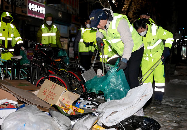 유정복 시장, 새해 첫 일정으로 거리환경정비 나서 - 환경공무관들과 인천논현역 일대 생활쓰레기 수거 활동 - 유정복 시장, “보이지 않는 곳에서 묵묵히 애써 주셔서 감사”