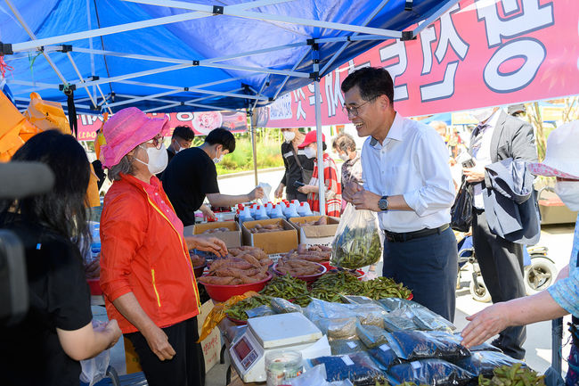 지난해 추석맞이 직거래장터를 방문한 이기재 양천구청장