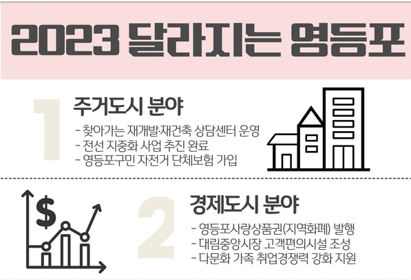 영등포구가 올해 새롭게 시행되는 정책과 제도를 한눈에 담은 ‘2023년 달라지는 영등포’를 pdf 형식의 전자책으로 제작해 구 홈페이지를 통해 제공한다고 밝혔다.