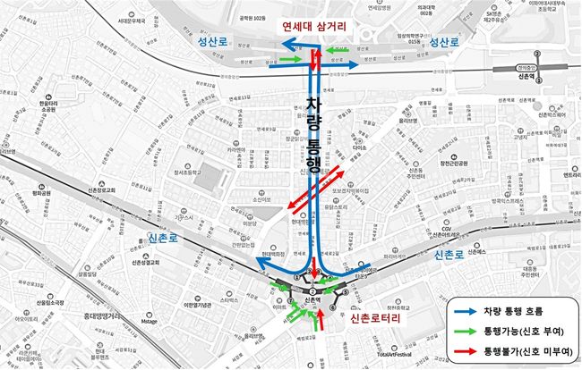 1월 20일부터 대중교통전용지구의 운용이 일시정지되더라도, 현행 연세로의 보도폭(7~8m) 등의 보행환경과 왕복2차로(차로폭 3.5m)는 유지되며, 연세대삼거리와 신촌로터리의 신호체계도 현행과 같이 유지된다.