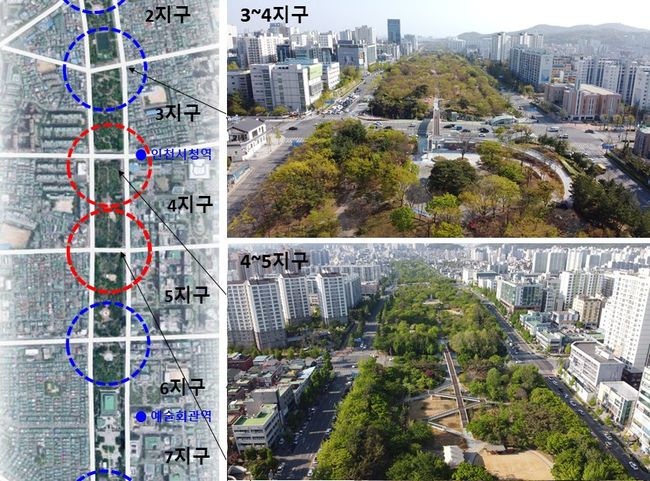 인천광역시는 중앙공원에 조성한 보행육교 2개소의 명칭을 시민 설문조사를 통해 선정한다고 18일 밝혔다. 사진은 이번에 이름을 짓기로 한 중앙공원 3-4지구, 4-5지구 보행육교 전경