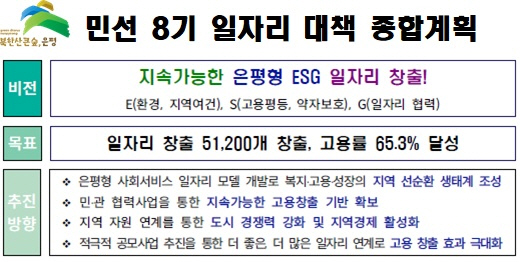 서울 은평구는 2026년까지 고용률 65.3% 일자리 51,200개를 목표로 `민선 8기 일자리대책` 추진한다.
