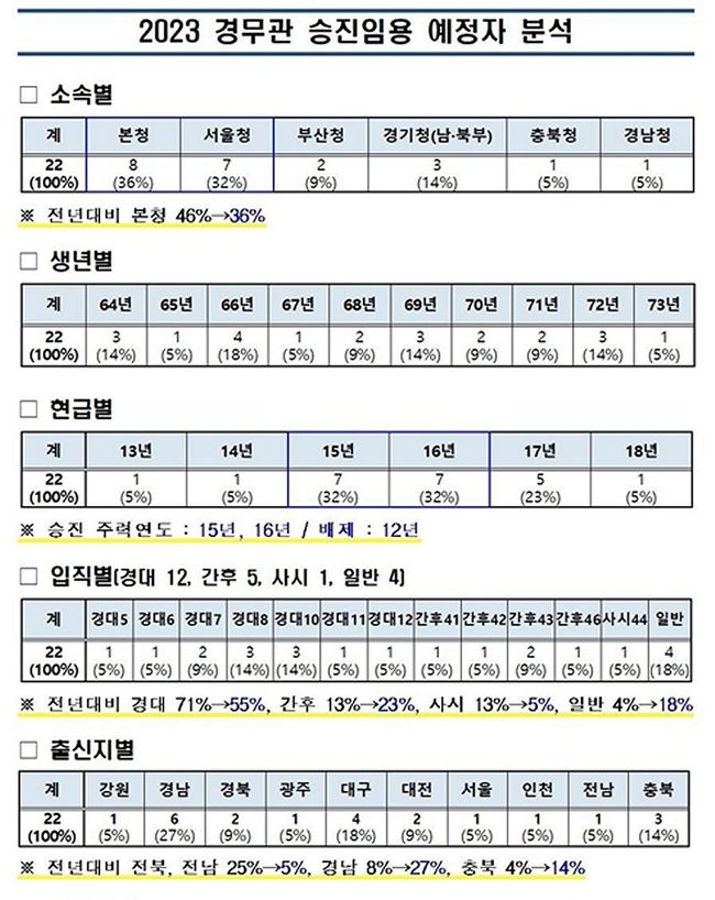 2023 경무관 승진임용 예정자 분석자료 (이형석 의원실 제공)