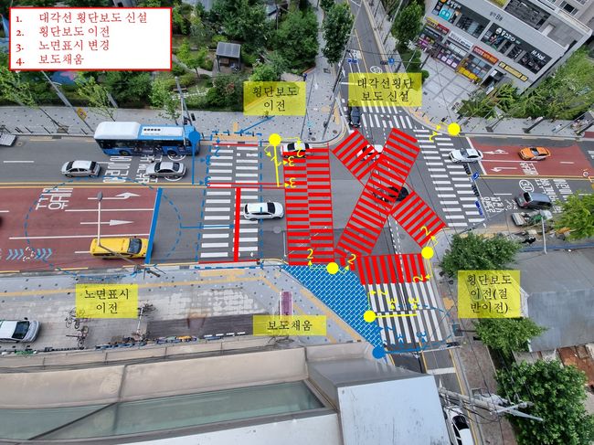 개선안의 주요 내용으로는 ▲양평3가어린이집 주변의 교차로 3개소 개선 ▲영문초등학교 주변의 통학로 5개 보도 확장 ▲어린이보호구역 시한영유치원 앞 대각선횡단보도 개선(안)종점부 안전시설 정비, 유색포장 실시 등 교통안전 시설별 맞춤 개선안이 포함되어 있다.