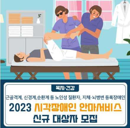 ‘시각장애인 안마 서비스’ 사업은 노인성 질환자와 지체 및 뇌병변 등록 장애인의 건강을 증진하기 위한 사업이다. 또한 이 사업은 일반 사업장에 취업이 어려운 시각장애인들의 일자리 창출 효과까지 있다.