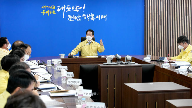 김영록 전라남도지사는 25일 도청 재난상황실에서 실국장들이 참석한 가운데 대설 대처상황 점검회의를 열고 출근길 제설․제빙작업 철저, 취약계층 한파 피해 일제점검 등 도민 안전을 위한 발빠른 대응을 지시했다고 밝혔다.