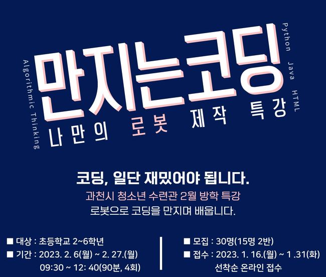 `만지는 코딩, 나만의 로봇 제작 특강` 포스터 (사진제공=과천시청)