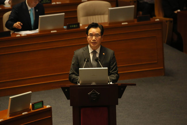정황근 농림축산식품부 장관이 7일 국회 경제 분야 대정부질문에 국민의힘 최춘식 의원의 질의에 답변하고 있다.