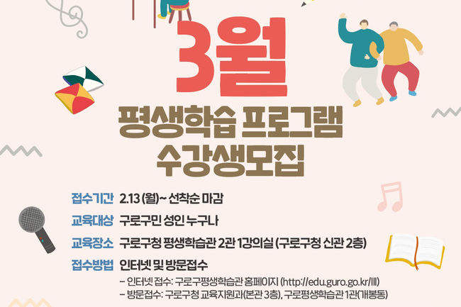 구로구가 상반기 평생학습관 프로그램을 운영한다.