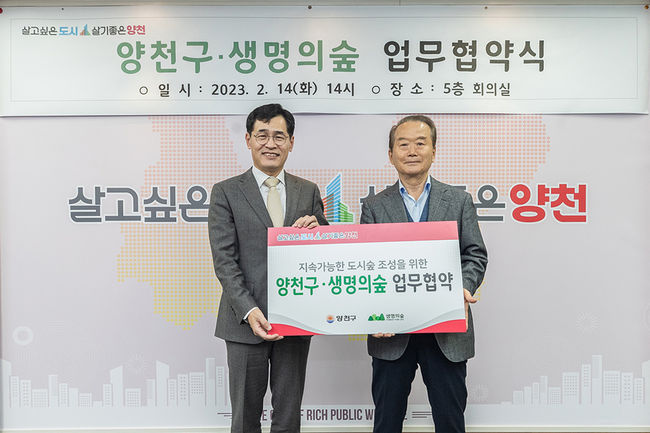 14일, 양천구-(사)생명의숲 지속가능 도시숲 조성 MOU 체결 현장(사진=양천구청 제공)
