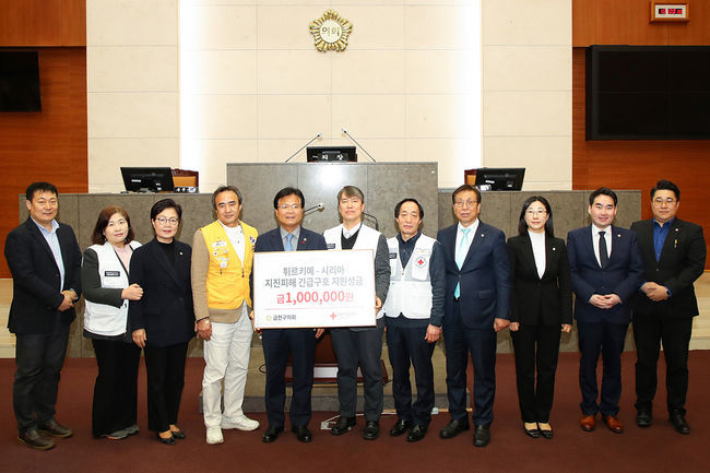 서울시 금천구의회가 16일, 대규모 지진으로 어려움을 겪고 있는 튀르키예와 시리아 지역 이재민 구호활동을 돕기위해 희망의 손길을 전했다.