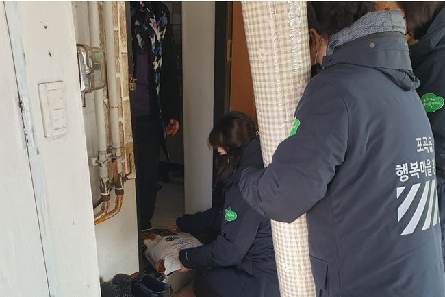 이날 포곡읍 행복마을관리소 근무자들은 포곡읍 삼계리와 전대리 일대 홀로 어르신가구 40곳을 방문해 쌀과 생필품을 전달하고, 간단한 설거지까지 도왔다.