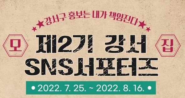 서울 강서구는 SNS를 통해 구민이 직접 우리 지역을 홍보하는 ‘제2기 강서 SNS 서포터즈‘를 모집한다고 밝혔다.