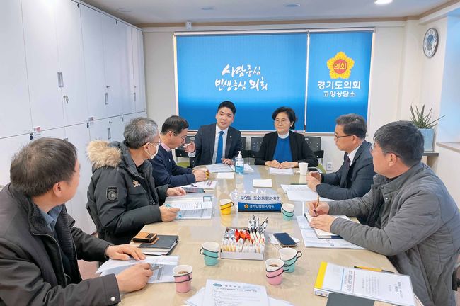 경기도의회 안전행정위원회 정동혁 의원이 23일 더불어민주당 문명순 지역위원장과 연제찬 경기도 안전관리실장, 고양특례시 방경돈 시민안전주택국장 등 9명이 참석한 가운데 고양시 관내 자연재해예방사업 추진과 안전관리방안 마련을 위하여 고양상담소에서 간담회를 가졌다.