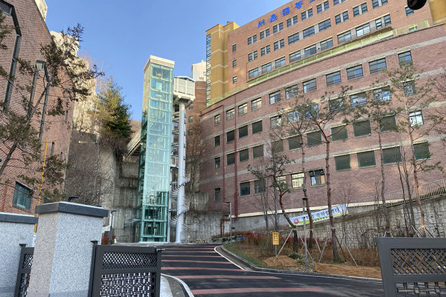 금천구는 금동초교와 관악 벽산타운 아파트 5, 6단지를 잇는 수직형 엘리베이터와 보도교 설치를 완료하고 2월 27일 개통식을 개최했다.