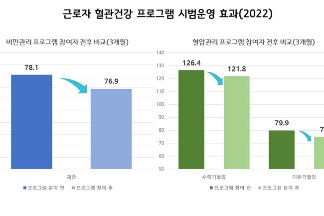 2021년부터 운영 중인 ‘혈관 건강 프로그램 시범운영’은 혈압, 혈당, 콜레스테롤 등 혈관 건강 수치가 정상범위를 벗어난 근로자의 혈관 건강 수치를 최소 3개월 동안 관찰·관리하고 건강정보도 제공하는 내용이다.