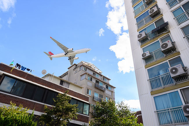 양천구 공항소음피해주택가를 지나는 항공기(사진=양천구청 제공)