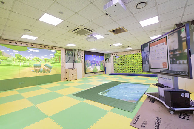 스마트 발달트레이닝센터는 ▲미션을 수행하며 클라이밍을 하는 ‘클라이밍 콘텐츠’ ▲점선잇기·사칙연산 퍼즐·키오스크 훈련 등 ‘모션인식 콘텐츠’ ▲가상공간에서 걷거나 뛰는 운동, 복지관 오는 길을 연습하는 ‘스마트워킹 콘텐츠’ ▲곤충채집·인형뽑기·플라잉버드 등 ‘스마트 롤러 콘텐츠’ ▲디지털 피아노·장난감 맞추기·두더지 게임 등 ‘인터렉션 트레이닝 콘텐츠’ ▲그림을 그려 스캔하면 대형화면에서 움직이는 ‘디지털 스케치 콘텐츠’ 등 실제 생활환경을 가상 현실로 구현, 장애로 인한 물리적 제약을 보완해 개인별 맞춤 체험 활동이 가능하다.