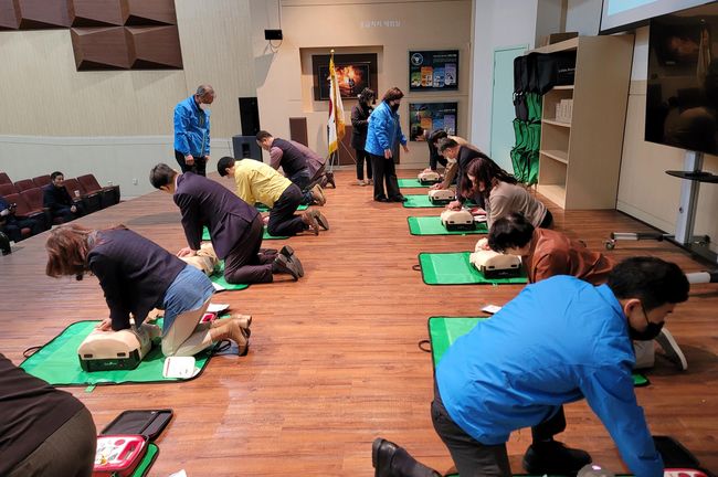 교육내용을 살펴보면 ▲가슴압박 심폐소생술 ▲자동심장충격기(AED) 사용법 ▲최초 발견자의 신속한 심폐소생술 중요성 등 실제 상황에서 도움이 되는 실습 위주로 진행됐다.