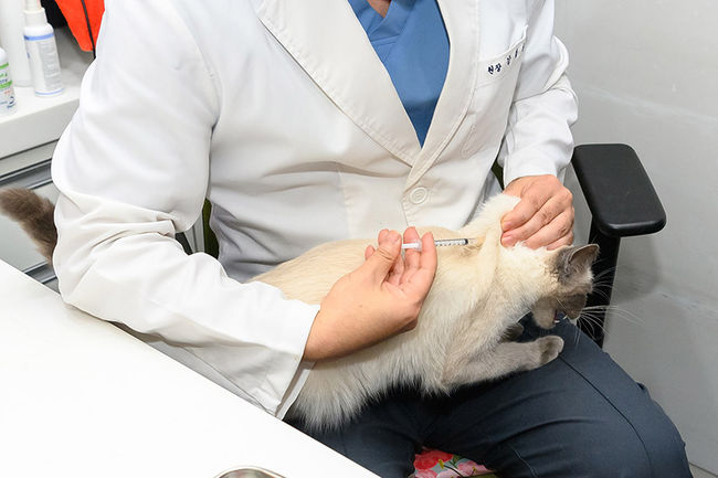 관내 지정 동물병원에서 광견병 예방접종중인 고양이(사진=양천구청 제공)