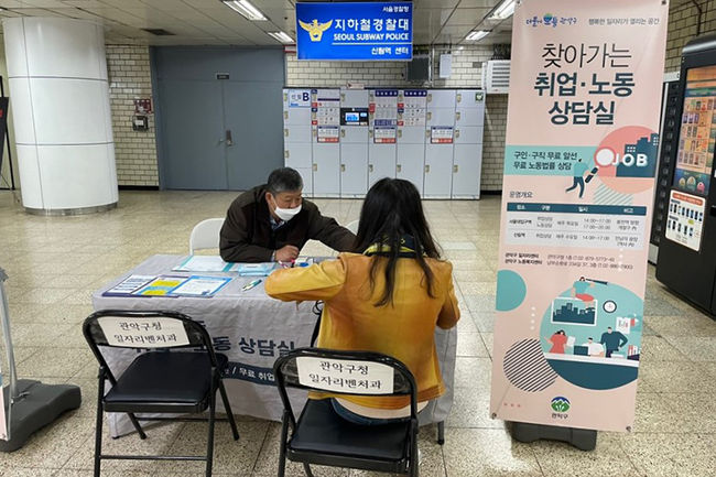 관악구가 지하철 역사 내에서 ‘찾아가는 취업·노동 상담실’을 운영, 구민들의 취업기회 확대와 근로자 권익보호에 나선다.