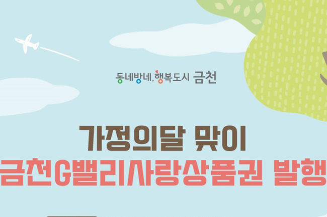 금천구는 5월 3일 가정의달을 맞아 지역 내 소비 촉진과 소상공인 매출 증대를 위해 금천G밸리사랑상품권을 발행한다.