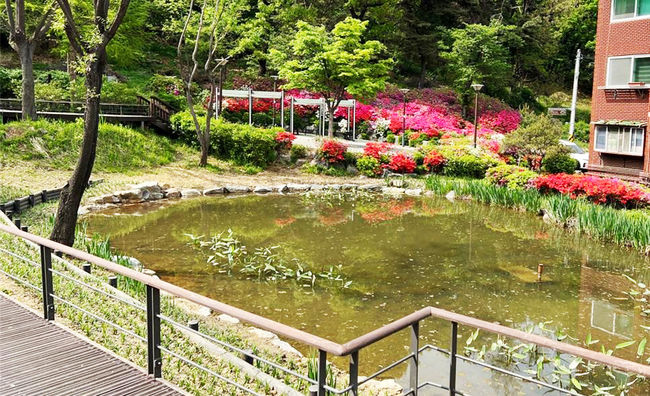 또 연못 안에 수련, 연꽃 등 수생식물 3종 1,820분을, 그 주변으로는 맥문동, 수호초 등 9종 2만8,470본의 초화류를 식재했다.