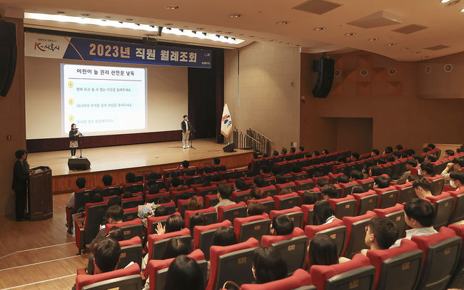 시청 직원 250여 명이 참석해 진행된 행사에는 시흥시 아동참여위원회를 대표해 김지민, 이지은 아동이 ‘아동의 놀 권리’에 대한 선언문을 낭독하고, 아동권리의 중요성을 되새겨보는 시간을 마련했다.