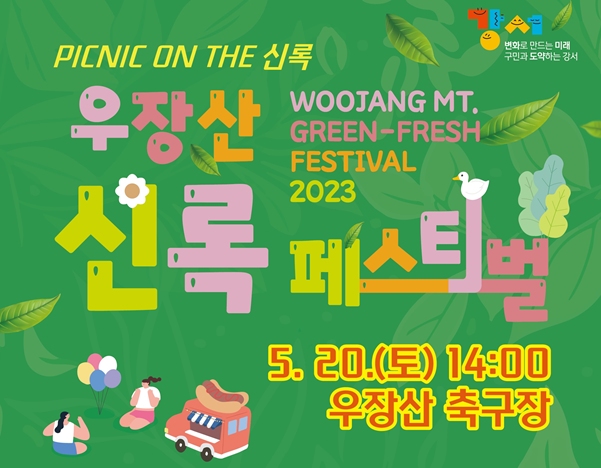 서울 강서구는 ‘아이·소풍’을 주제로 오는 20일 오후 2시부터 밤 9시까지 우장산 축구장에서 ‘2023년 우장산 신록 페스티벌’을 개최, 문화와 예술이 넘치는 강서의 매력을 뽐낸다.