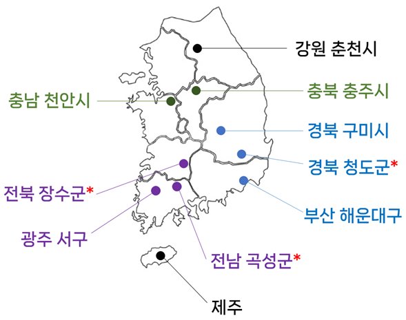 이번에 선정된 10개 지자체는 부산 해운대구, 광주 서구, 강원 춘천시, 충북 충주시, 충남 천안시, 경북 구미시·청도군, 전북 장수군, 전남 곡성군, 제주특별자치도 등이다.