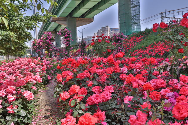 금천구는 안양천 금천한내장미원의 사계 장미 100만 송이가 만개했다고 밝혔다.
