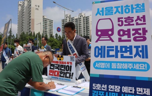 이들은 ▲윤석열 정부와 국민의힘은 일본 정부의 원전오염수 해양투기와 후쿠시마산 수산물 수입 요구를 거부하고 주권국가로서 강력하게 항의하라 ▲윤석열 정부와 국민의힘은 국민의 의사에 반하는 반역사적, 반민족적 친일 행보에 공개 사죄하라 ▲서울지하철 5호선 김포 연장 예타 면제로 수도권 서부지역 교통망 조기 확충하라고 촉구했다.