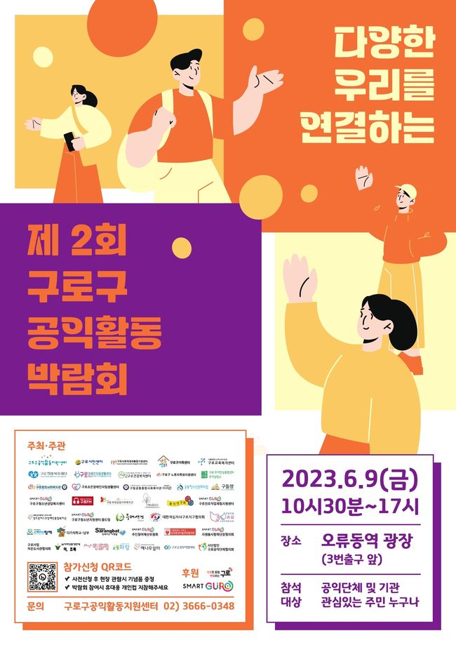 구로구는 6월 9일 오전 10시 30분부터 오후 5시까지 오류동역 광장(3번 출구)에서 ‘제2회 구로구공익활동박람회’가 개최된다고 밝혔다.