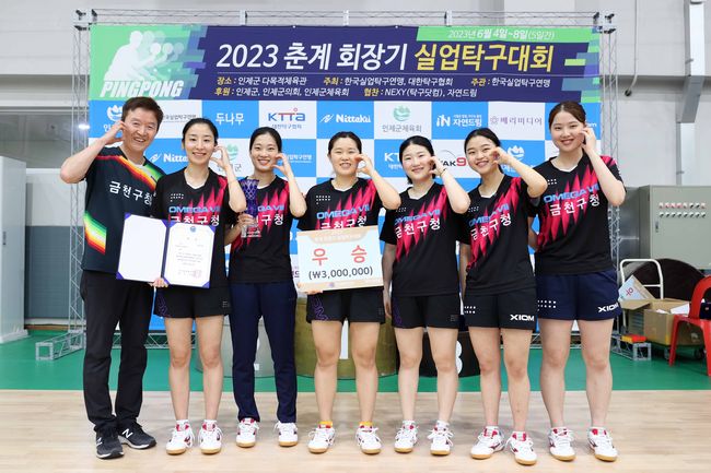 금천구는 6월 4일부터 8일까지 강원도 인제군 다목적 경기장에서 열린 ‘춘계회장기 실업탁구 대회’에서 단체전 우승, 개인복식 우승, 혼합복식 우승의 쾌거를 이뤄냈다고 밝혔다.