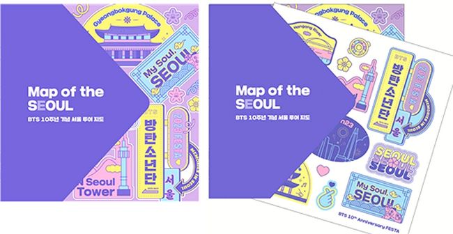 BTS 10주년 기념 서울관광재단에서 제작한 서울방탄투어 지도(Map of the Seoul)와 함께 제공되는 한정 스티커팩