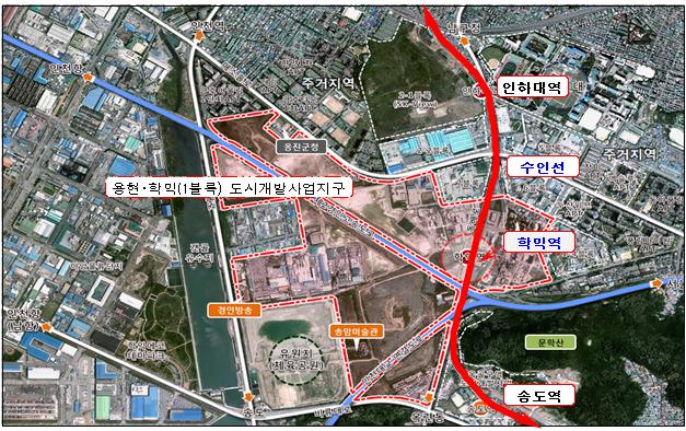 수인선 학익역(가칭) 신설사업 위치도인천광역시는 지난 6월 13일 시와 국가철도공단, 코레일, 디씨알이 간 용현·학익(1블록) 도시개발사업 ‘수인선 학익역(가칭) 신설사업 위·수탁 협약’을 체결했다고 14일 밝혔다.